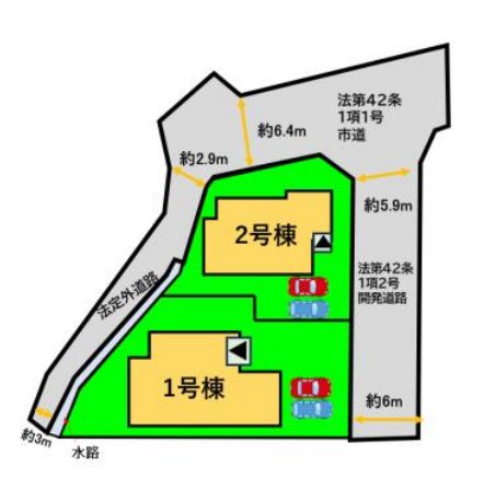 一方 【内訳】 ●東 幅6m 公道 接面8.2m 舗装有
