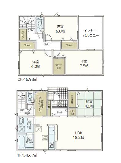 101.65㎡(1階:54.67㎡ 2階:46.98㎡ ) / 約30.74坪